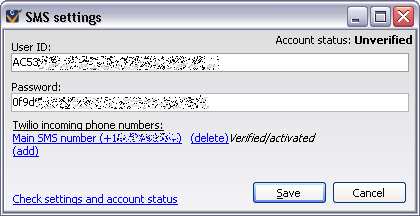 Enter the phone number, an optional description, and choose the type of incoming message that this phone number represents. (Messages which are texted to this phone number become incoming messages of this type.)