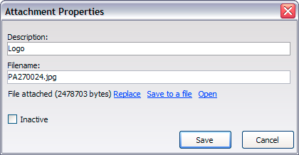 After the attachment is defined, you can replace the file within, save it to a file on your disk, or have VSys try to open it.