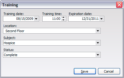 Training records come in two kinds: those associated with a training course, and standalone records which are not connected to a training course. Both track the same information, but a record associated with a training course gets its date, duration, subject, and location from the course, and updating the course updates all of the training records in that course.
