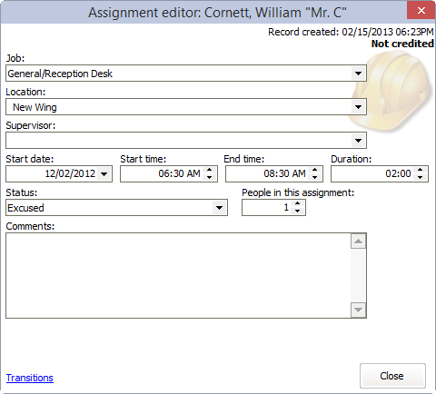 Note that if you give someone hours without crediting those hours specifically to the assignment, the assignment will still show as Not credited. This happens because VSys doesn't have a link between the hours record and the assignment when you credit the hours this way.