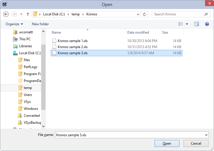 Records from Kronos can be imported in one of two ways: