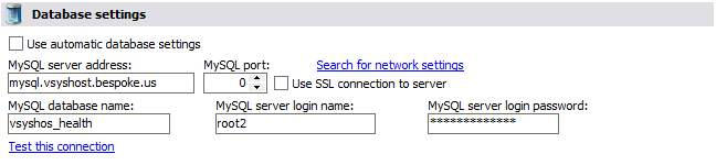 Overrides the port used (if blank or zero, VSys uses the default of 3306). Don't change this unless specifically instructed. |