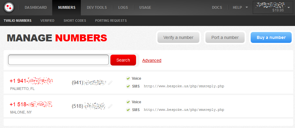 3. Purchase at least one incoming phone number from them. You should get one in the same area code as your regular phone numbers, but this number cannot be the same as your regular phone number and must be acquired from Twilio.