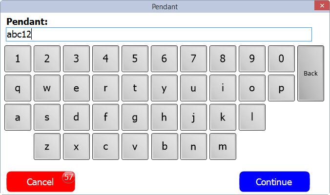 VSys can track these by having the volunteer scan an object at check in then scan it again at checkout. Or the item's code can be typed by hand. If enabled, when a volunteer checks in at the kiosk, she's asked to scan her token, in this example called a "pendant".