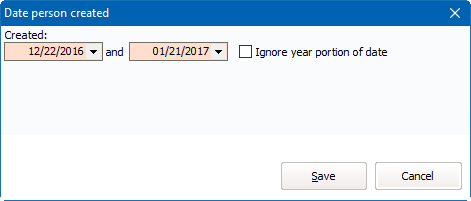 If we saved the report with these dates, 01/01/2017 and 01/31/2017, when we open them February, the report will still have those dates in it. If instead we used relative dates, in the example below to add/subtract days "-30" in the first field and add/subtract days "0" in the second, when we open the report on January 21st, it will show with dates relative to the current date. Note date fields which hold relative dates show in pink to differentiate them from fixed dates.