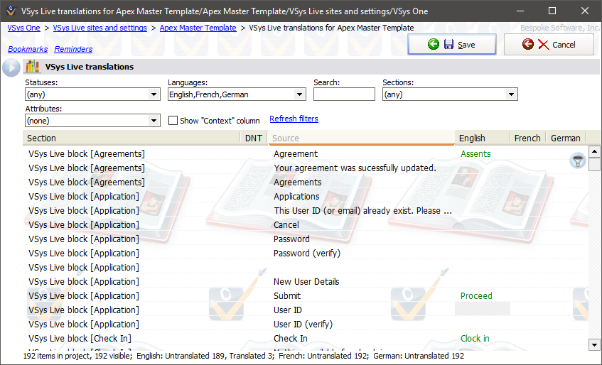 An item marked as "Do not translate" will not be translated within VSys Live. |